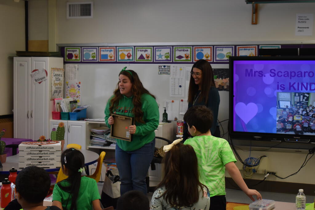 Congratulations to Mrs. Scaparo's 2nd grade class for winning the GPO "It's Cool To Be Kind" contest on March 17th! The students in Mrs. Scaparo's class received delicious pizza from Cliff's Local Market, a bag of goodies from GPO Federal Credit Union, and the super fun energy/music of Bug Country's Alex and Kiss FM's Liz!
