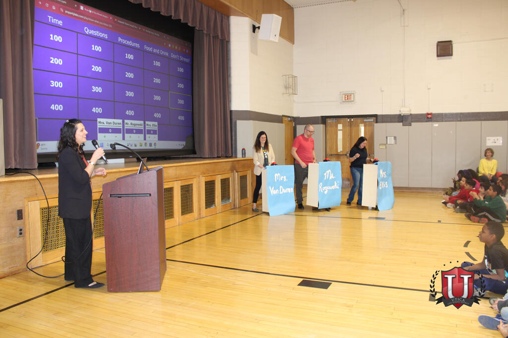 The Jefferson auditorium buzzed with excitement as students cheered during the high-energy “Jeopardy” pep rally, celebrating the upcoming NYS Tests. Students and staff engaged in a lively game of Jeopardy, reviewed important strategies, and talked about the importance of showing NYS Jefferson students are super smart. It was a great afternoon that reminded us all that we are ready for the tests!