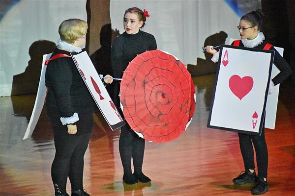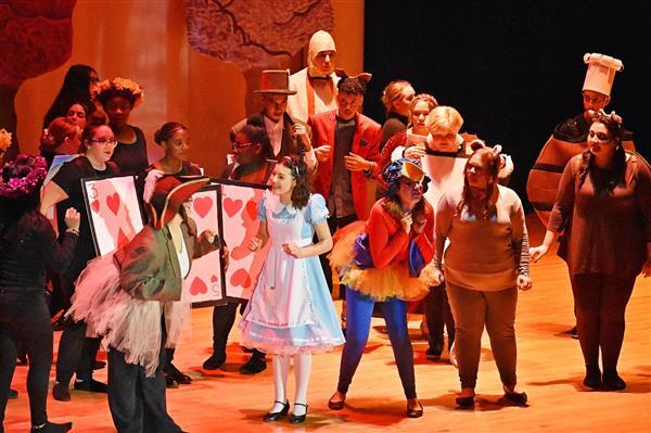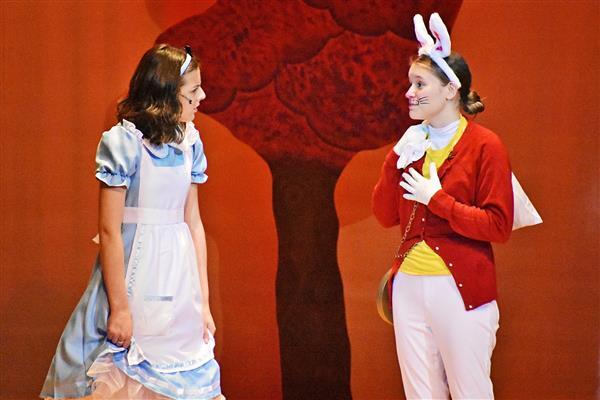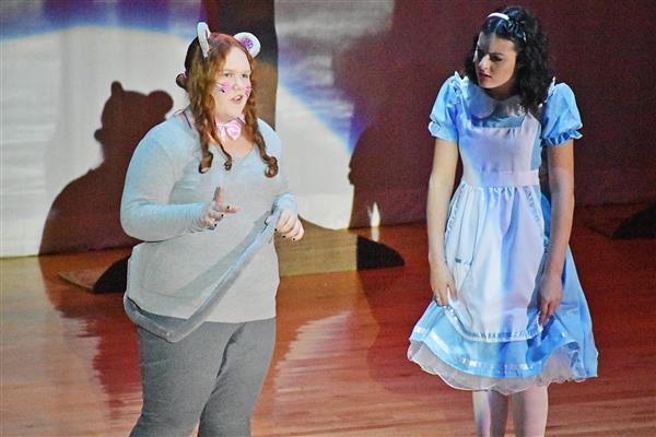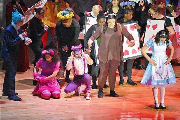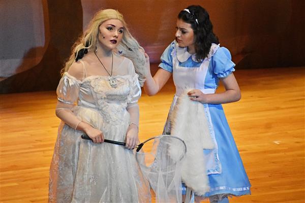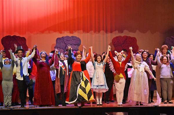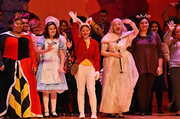 On October 18 2019, Proctor Drama Club debuted their fall production, Alice's Adventures in Wonderland in Proctor High School's auditorium. Both performances were well attended, with more than 60 students participating in the cast and crew. The students worked very hard to put the production together in a little over a month; many of them attending Saturday rehearsals in order to prepare for their upcoming performances. They did an excellent job of bringing the show to life with dynamic character development along with colorful costumes and makeup. The play featured sophomore Jayla Zayas in the leading role of Alice as she adventured through the zany world of Wonderland. The students thoroughly enjoyed the show and are looking forward to their next production, High School Musical this upcoming January!